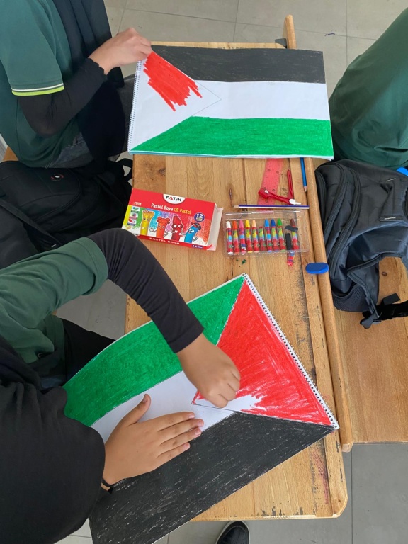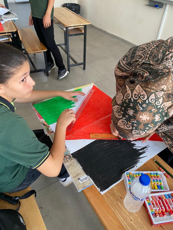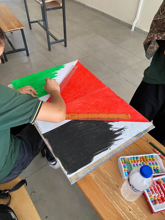 Okulumuzda Filistin'e destek olmak ve konu ile ilgili farkındalık oluşturmak amacıyla ''Filistin için farkındalık'' etkinliği yapıldı.